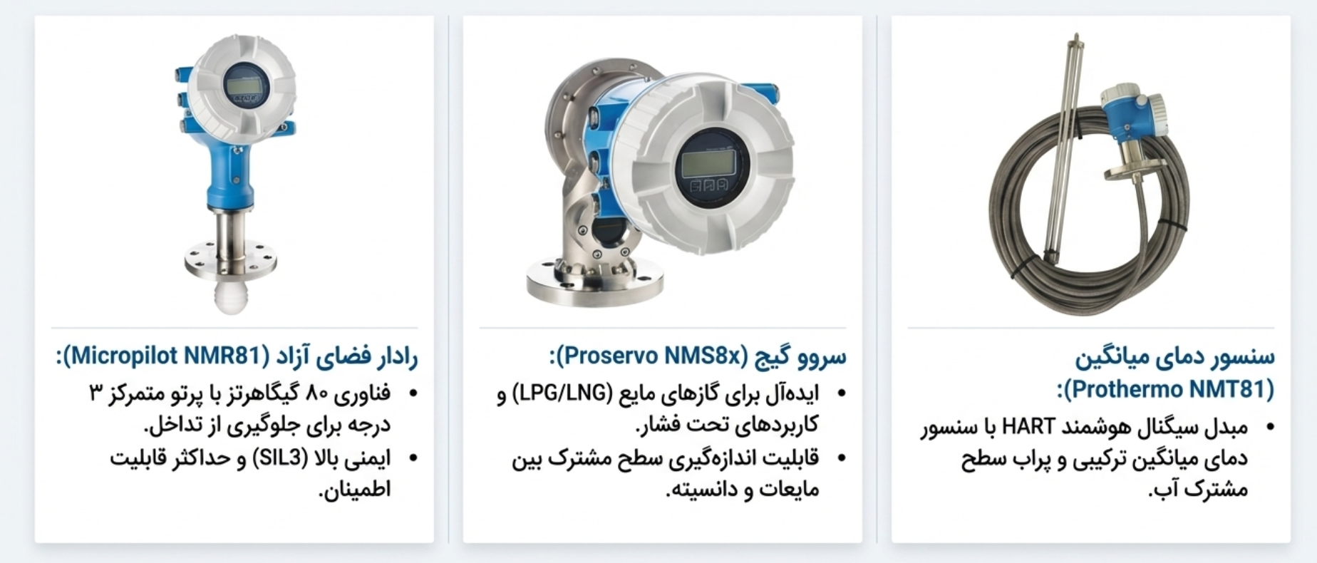 در نهایت، انتخاب مناسب فناوری و مدل سطحسنج، نقشی کلیدی در تضمین ایمنی، دقت و بهرهوری فرآیندهای صنعتی دارد. همانطور که مرور شد، هر روش اندازهگیری سطح—از اولتراسونیک و هیدرواستاتیک گرفته تا خازنی و رادیومتری—دارای مزایا و محدودیتهای خاص خود است و کاربرد آنها به شرایط فرآیندی، ویژگیهای سیال و الزامات دقت وابسته است. فناوری رادار، چه به شکل فضای آزاد (Micropilot) و چه هدایتشده (Levelflex)، با استفاده از امواج الکترومغناطیسی و الگوریتمهای پیشرفتهای مانند Multi-Echo Tracking، توانسته بسیاری از محدودیتهای سنتی را پشت سر بگذارد. این تجهیزات، با مقاومت در برابر تغییرات دما، فشار و خواص سیال، عبور از فوم، بخار و غبار و توانایی حذف بازتابهای مزاحم، سطحی پایدار و قابل اعتماد ارائه میکنند و امکان کنترل دقیق فرآیندهای حساس، جلوگیری از خسارات مالی و کاهش خطرات ایمنی را فراهم میآورند. خانواده Micropilot با طیف وسیعی از مدلها از کاربردهای اقتصادی تا صنعتی و دقیق، و خانواده Levelflex با تمرکز بر رادار هدایتشده برای شرایط دشوار و اندازهگیری مواد جامد یا مایعات با خواص چالشبرانگیز، نمونهای برجسته از انعطافپذیری و پیشرفت فناوری در این حوزه هستند. برای مهندسین بهرهبرداری، طراحی فرآیند و نگهداری، درک کامل ویژگیها و محدودیتهای هر مدل و انتخاب تجهیزات متناسب با شرایط عملیاتی، نه تنها باعث بهینهسازی عملکرد و کاهش خطاهای اندازهگیری میشود، بلکه نقش مؤثری در افزایش ایمنی، کاهش توقفهای ناخواسته و مدیریت دقیق موجودی در مخازن و سیستمهای ذخیرهسازی ایفا میکند. به طور خلاصه، سرمایهگذاری در انتخاب صحیح سطحسنج، فراتر از یک الزام فنی، به یک تصمیم استراتژیک تبدیل شده است که هم به صرفهجویی اقتصادی و هم به تضمین سلامت و ایمنی فرآیند کمک میکند، و فناوریهای مدرن راداری، بهویژه با قابلیتهای هوشمند و انعطافپذیر خود، استانداردی جدید در اندازهگیری سطح برای صنایع مختلف تعیین مینمایند.