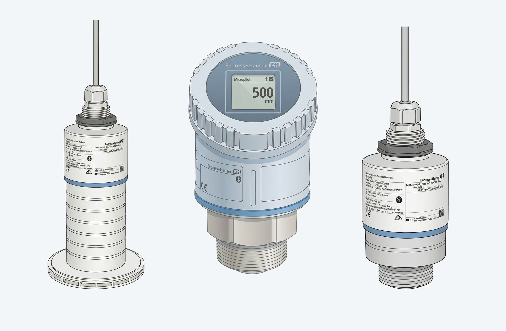 مدلهای Micropilot FMR10 و FMR10B بهعنوان کوچکترین و اقتصادیترین رادارهای این خانواده شناخته میشوند. FMR10B نسخه بهروزتر این تجهیز است که از چیپ راداری ۸۰ گیگاهرتز بهره میبرد و دقت و تمرکز پرتو بهتری ارائه میدهد. این مدلها بهطور گسترده در تصفیهخانههای آب، مخازن ذخیره آب و کانالهای باز مورد استفاده قرار میگیرند. یکی از ویژگیهای شاخص آنها، امکان راهاندازی و تنظیم از طریق بلوتوث و اپلیکیشن SmartBlue است؛ بدون نیاز به باز کردن درب تجهیز یا حضور در کنار تابلو برق. بدنه تمام PVDF نیز مقاومت بالایی در برابر رطوبت، خوردگی و شرایط محیطی نامناسب ایجاد میکند.