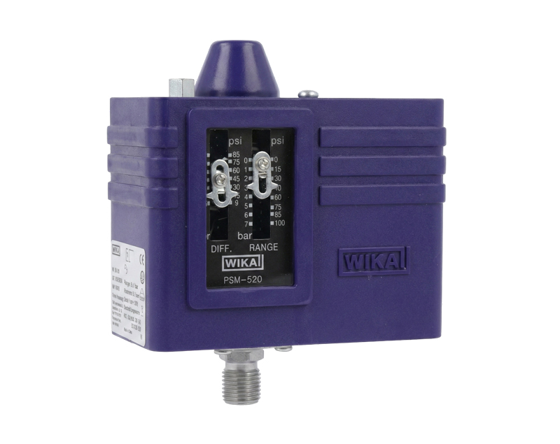 پرشر سوئیچ WIKA مدل PSM-520 یکی از تجهیزات کنترلی پرکاربرد در حوزه ابزار دقیق صنعتی است که با هدف پایش، کنترل و ایجاد هشدار در سیستمهای تحت فشار طراحی شده و به دلیل ساختار مکانیکی ساده اما دقیق، در طیف گستردهای از کاربردهای صنعتی مورد استفاده قرار میگیرد. این تجهیز در واقع یک کلید الکترومکانیکی وابسته به فشار است که با رسیدن فشار سیال به نقطه تنظیمشده، وضعیت کنتاکت داخلی را تغییر میدهد و به این ترتیب امکان قطع یا وصل مدارهای کنترلی، راهاندازی یا توقف پمپها و فعالسازی آلارمها را فراهم میکند. آنچه این مدل را در میان گزینههای همرده متمایز میسازد، قابلیت تنظیم دقیق نقطه سوئیچ در محل نصب، بازههای متنوع فشار و عملکرد پایدار در شرایط کاری سخت است که آن را به انتخابی منطقی برای مهندسان بهرهبردار و طراحان سیستم تبدیل کرده است.